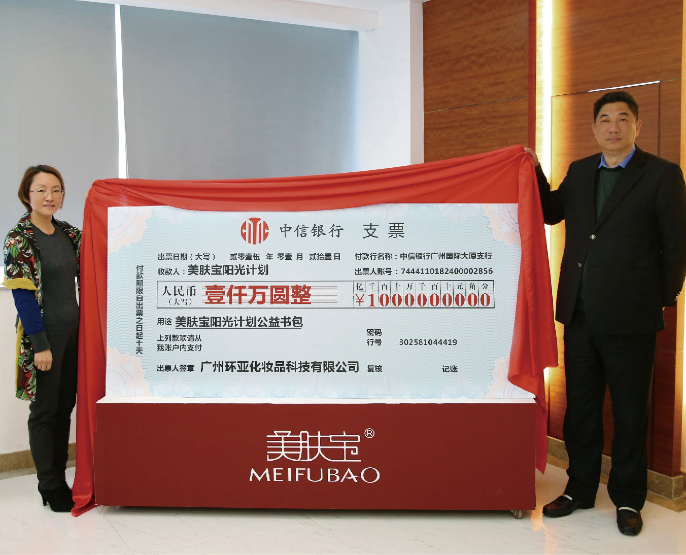 2015年,環(huán)亞集團投入一千萬元設立“美膚寶陽光計劃”公益基金,著力關愛留守兒童的健康成長。