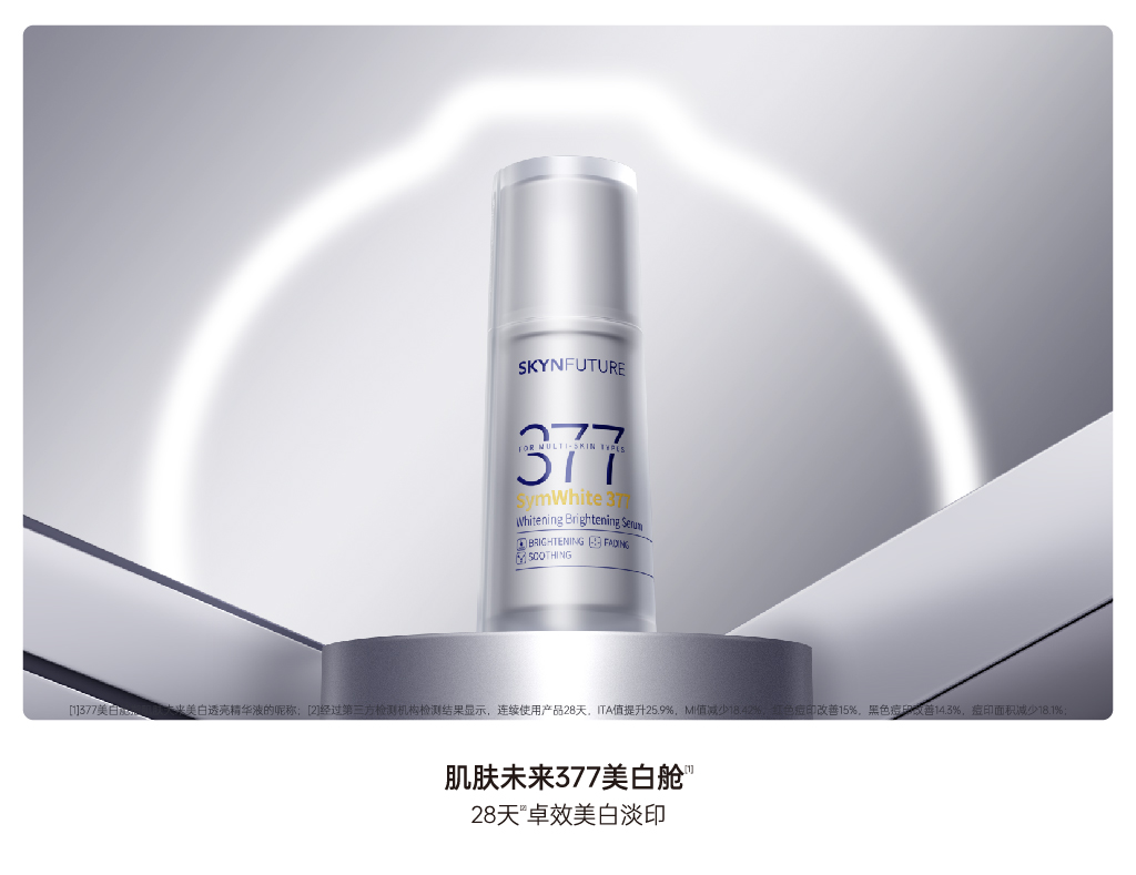肌膚未來是環(huán)亞集團(tuán)旗下的科學(xué)美白專研品牌,其研發(fā)團(tuán)隊(duì)在黑色素沉著領(lǐng)域有著長(zhǎng)達(dá)20多年的研究經(jīng)驗(yàn),始終堅(jiān)持以科技創(chuàng)新實(shí)現(xiàn)產(chǎn)品領(lǐng)先。肌膚未來堅(jiān)信比起單純的成分堆砌,多路徑協(xié)同才是實(shí)現(xiàn)皮膚健康白皙的更優(yōu)解。 「始于377 超越377」肌膚未來率先與全球頂尖原料供應(yīng)商德之馨深度共研打造377系列大單品,并成為國(guó)內(nèi)研究推廣377成分的先行者與引領(lǐng)者。 品牌以科學(xué)、高效、精準(zhǔn)、安全為核心理念,致力于在“科學(xué)美白”之路無限探索,無限進(jìn)化,做真正符合亞洲人的美白解決方案。 |