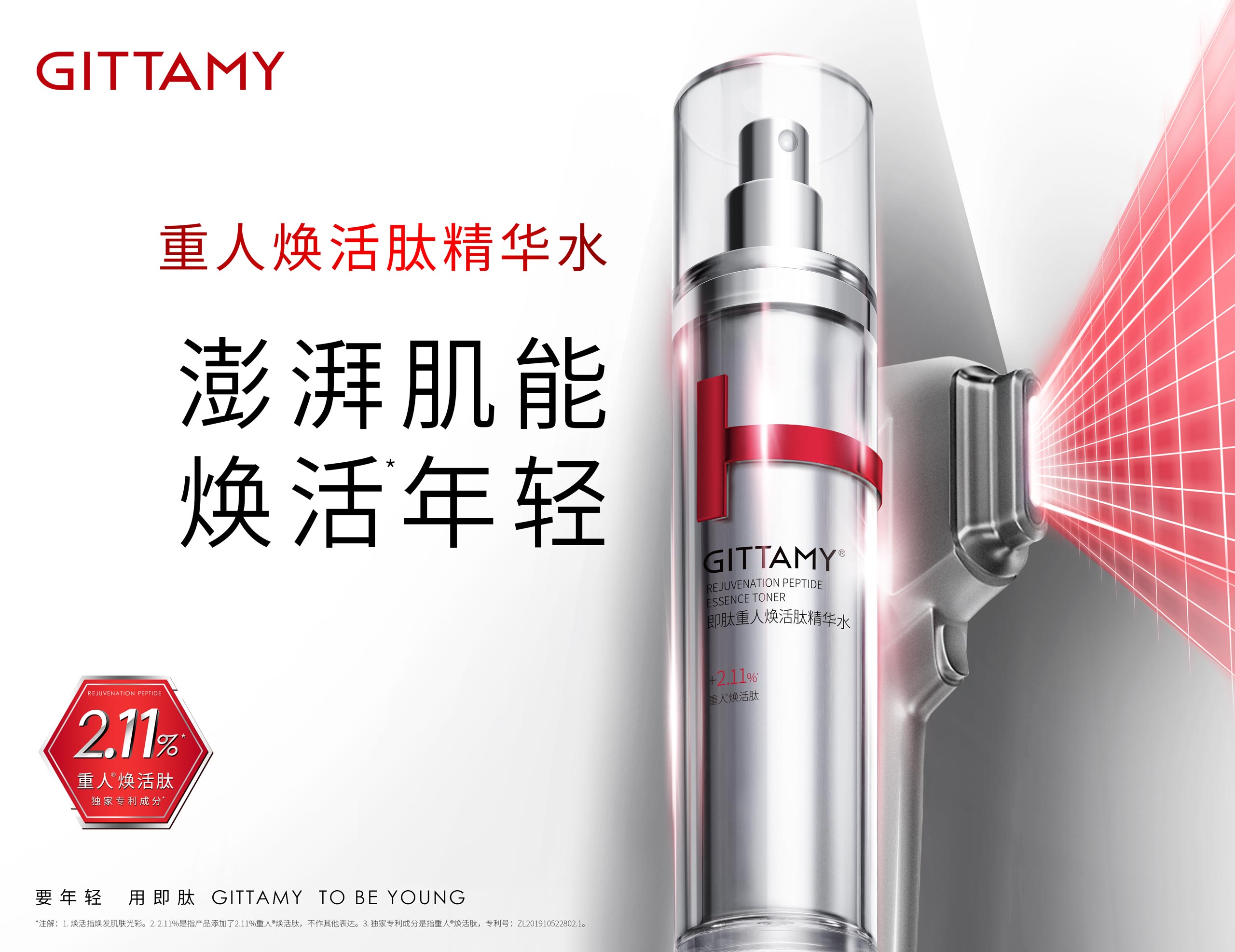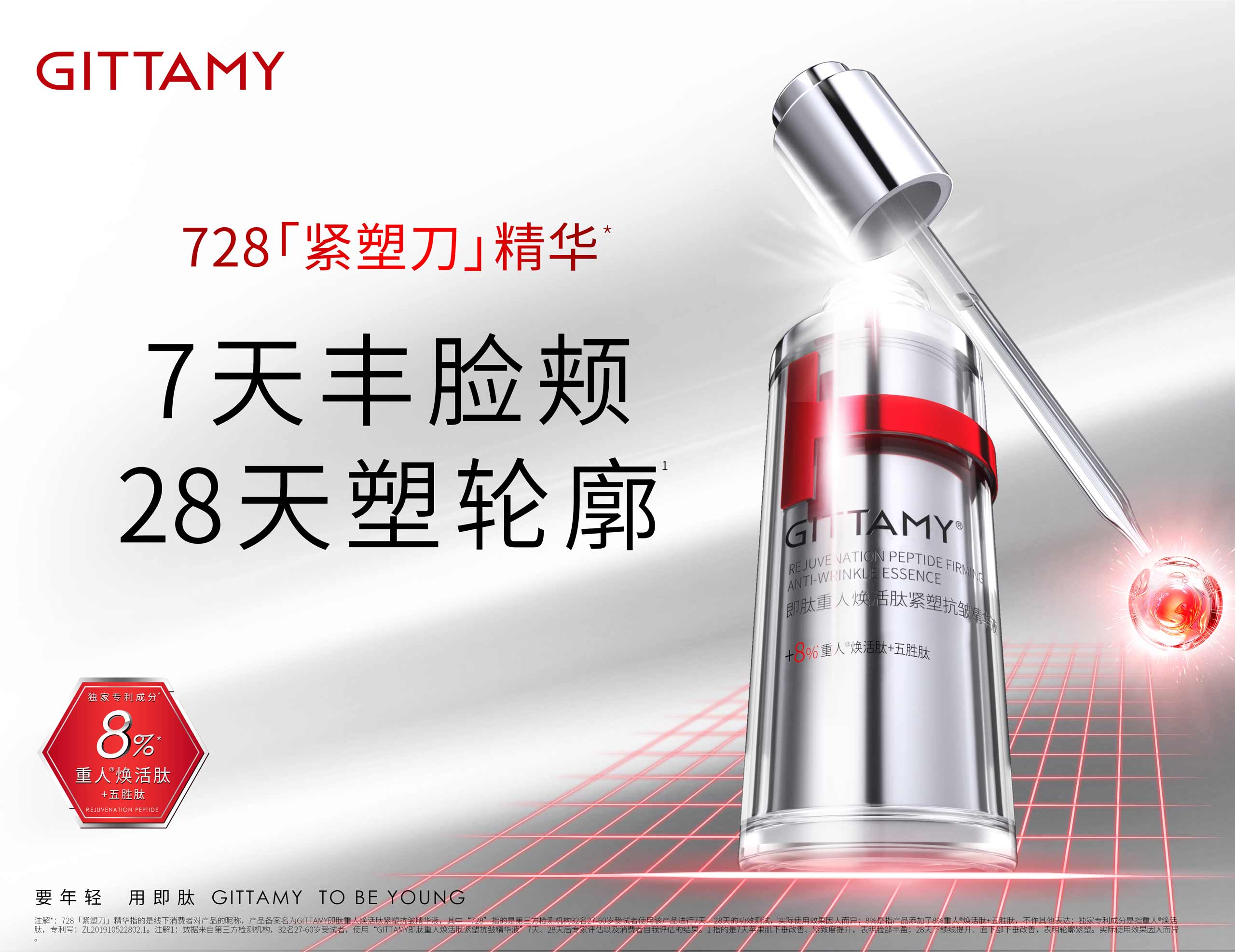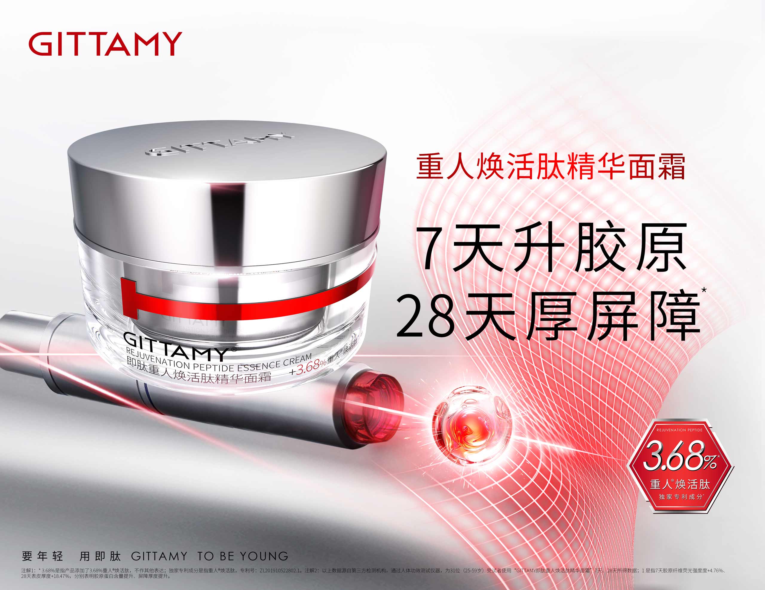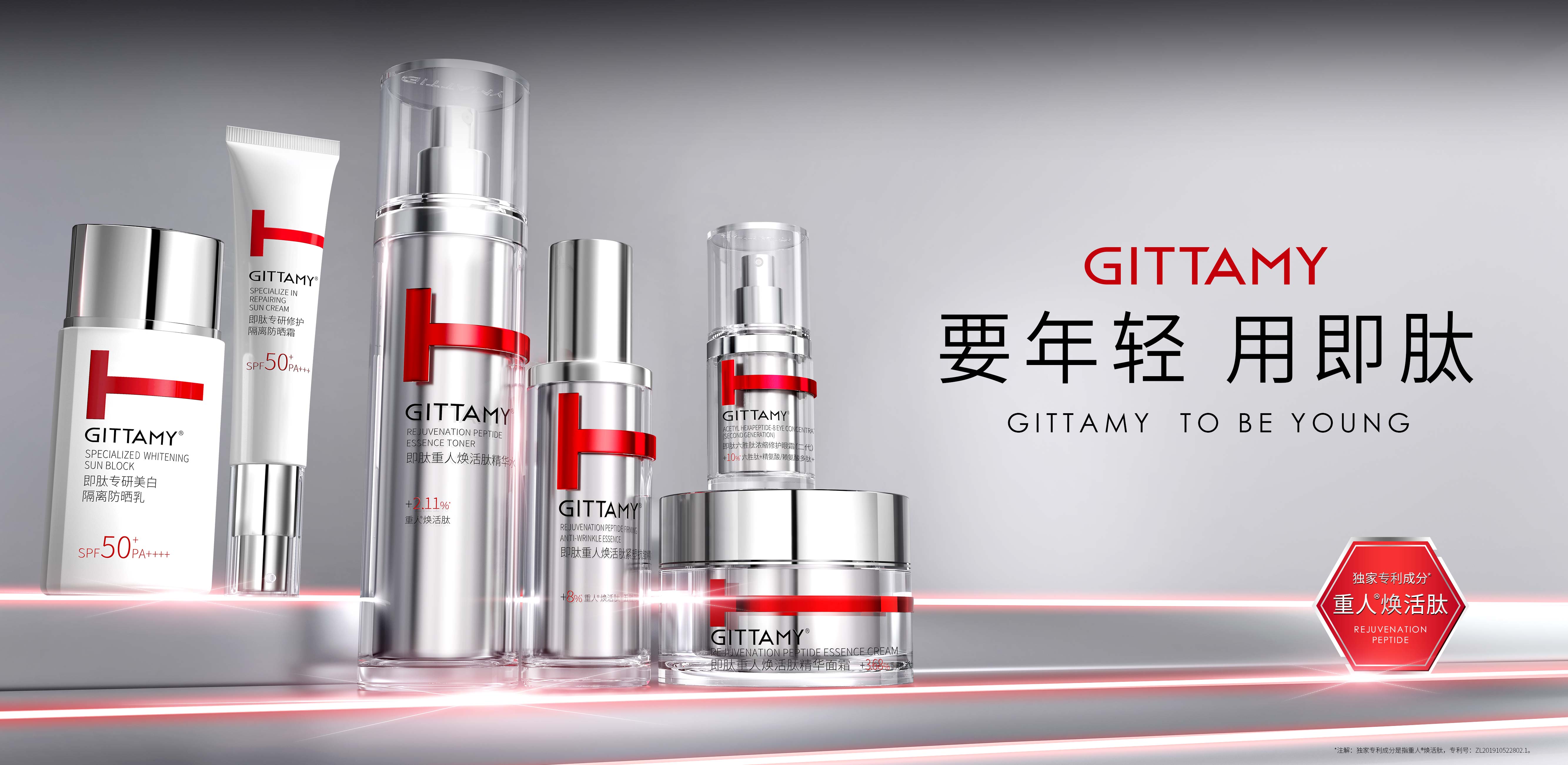 GITTAMY即肽,是一個能讓女性打破年齡界限,探尋年輕密碼的多肽科技抗皺品牌。2018年,即肽科技抗皺中心致力于破譯自然衰老定律,聯(lián)合全球知名專家與國家三甲醫(yī)院,開展多肽配方研發(fā)與功效測試。通過人體同源多肽提升皮膚的自我修護功能,讓皮膚從根源上煥發(fā)青春活力。GITTAMY即肽運用多肽科技,專研出重人?煥活肽*等多個品牌專利成分,令肌膚由內(nèi)而外重啟年輕態(tài)。
